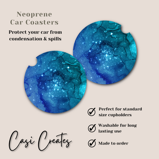Blue Watercolor Neoprene Car Coaster