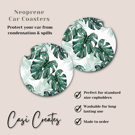 Monstera Neoprene Car Coaster
