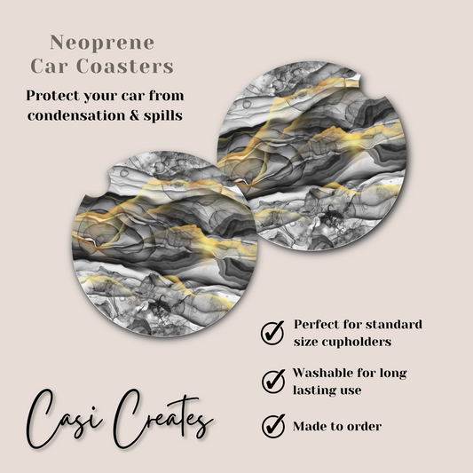 Black and Gold Marbled Neoprene Car Coaster
