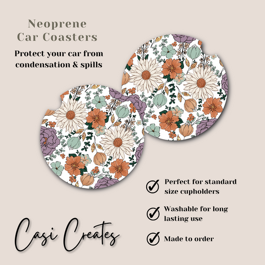 Floral Neoprene Car Coaster