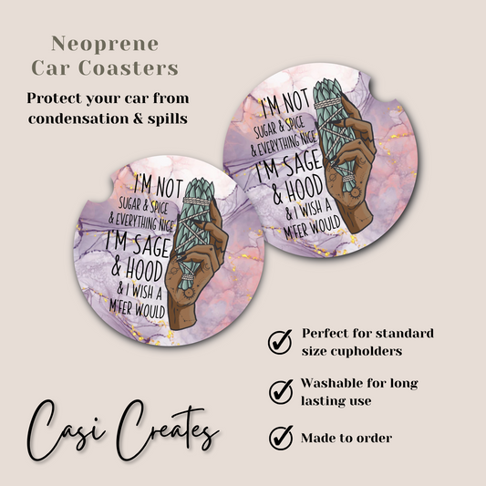 Sage and Hood (B) Neoprene Car Coaster