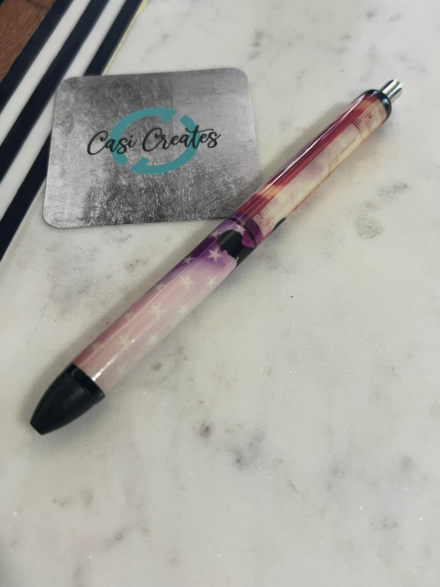 Step up your writing game. This handcrafted pen is created with an Ink Joy pen. This style of pen is a smooth writing, quick drying gel ink pen.